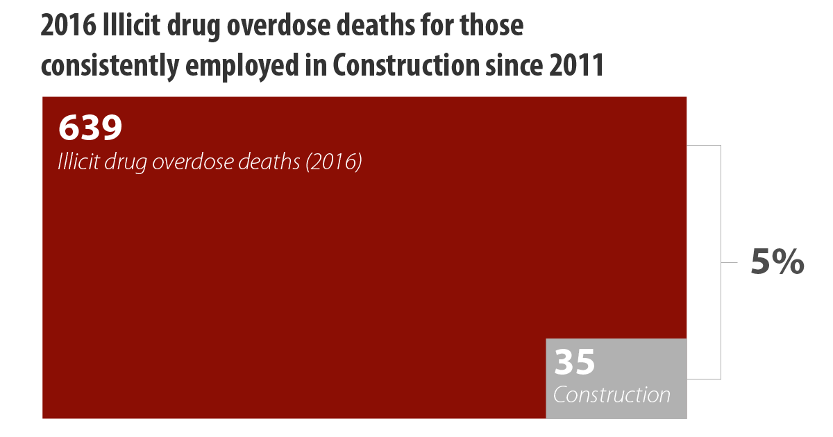 Many jurisdictions across Canada are struggling to manage opioid addictions within their communities. BC is no exception. The construction industry can be an important influencer in this battle, because the demographic composition of our workforce – adult males – aligns with demographic profile of the majority of those suffering from opioid addiction. However, we have seen no evidence to support broad claims in the media that the construction industry has a higher incidence rate than other industries. This is an important distinction as we strive to attract new entrants to the construction sector, recognizing that decades of negative stereotypes continue to play a key role in a persistent cultural bias that discourages desirable candidates from considering our industry.